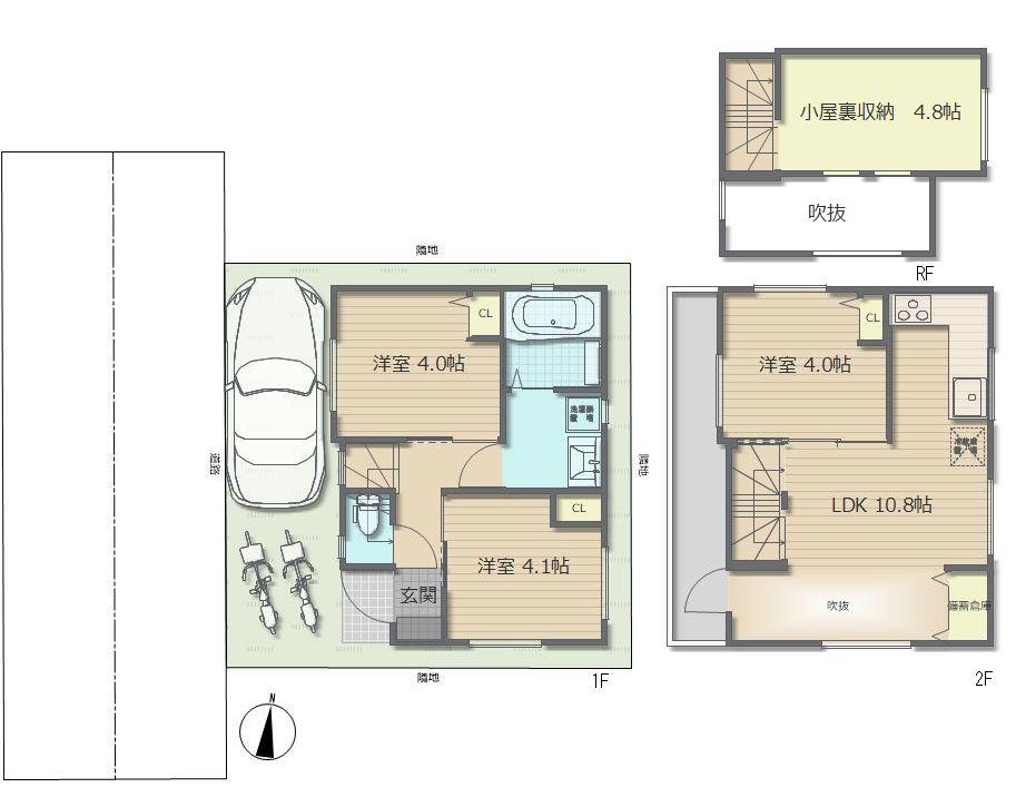 間取内容 LDK10.8畳 2階   洋室4畳 2階   洋室4.1畳 1階   洋室4畳 1階